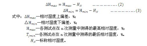 按下式計算恒溫恒濕試驗箱相對濕度偏差: