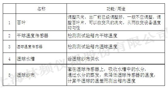 高低溫試驗(yàn)箱上圖結(jié)構(gòu)裝置功能描述: