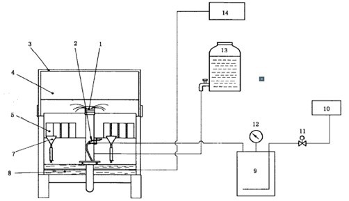 3-----試驗箱蓋;       10-----空氣壓縮機;  17-----廢水處理;